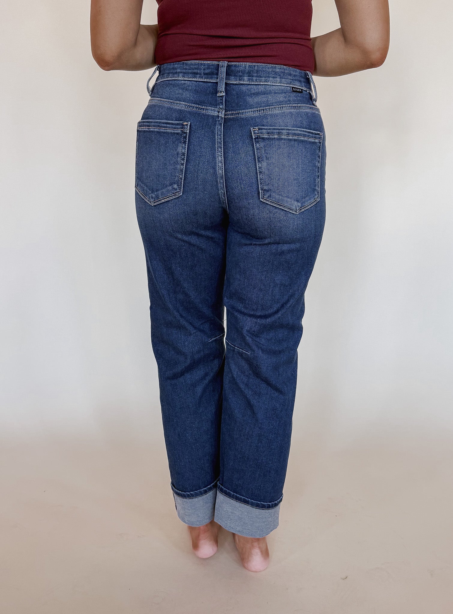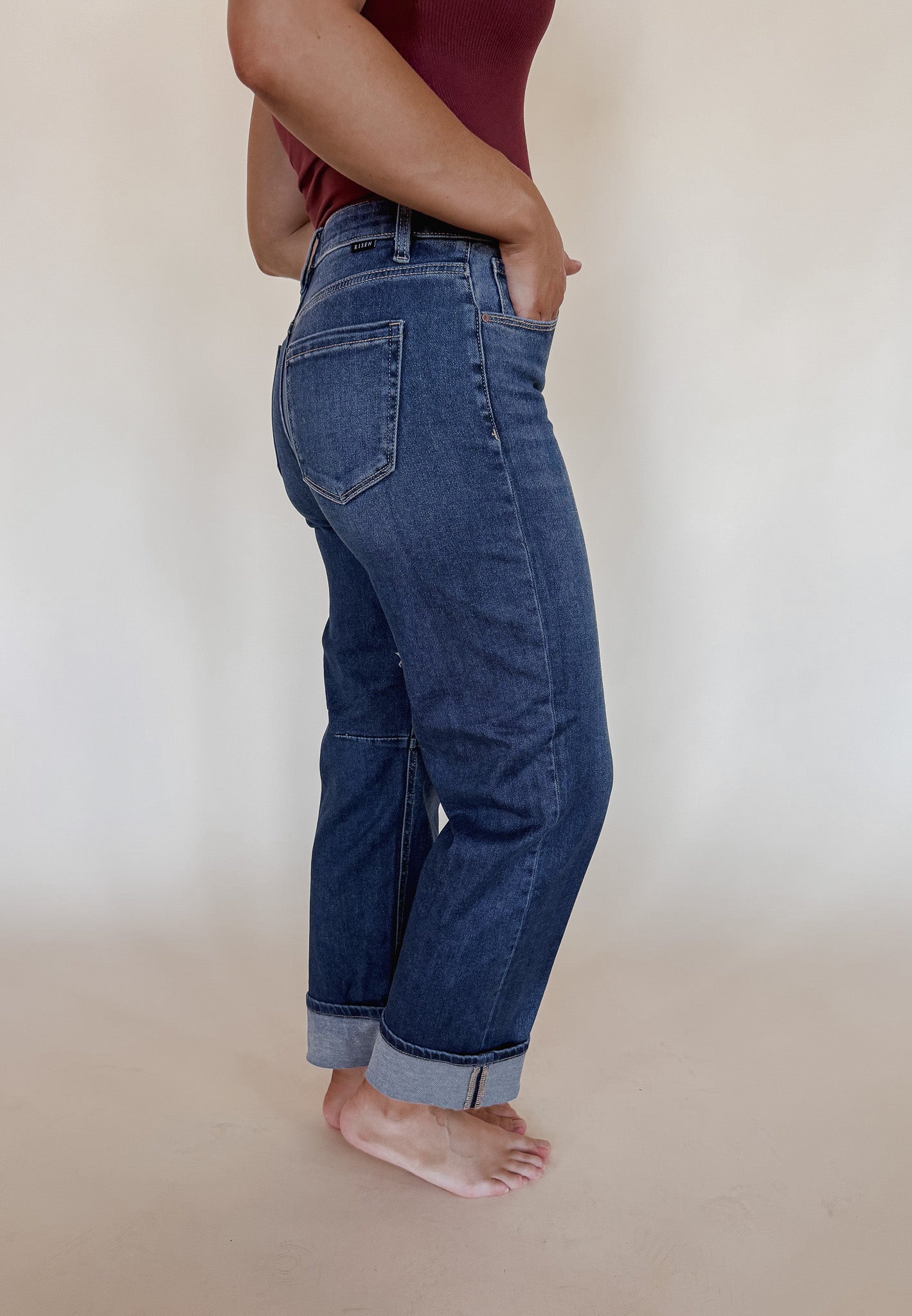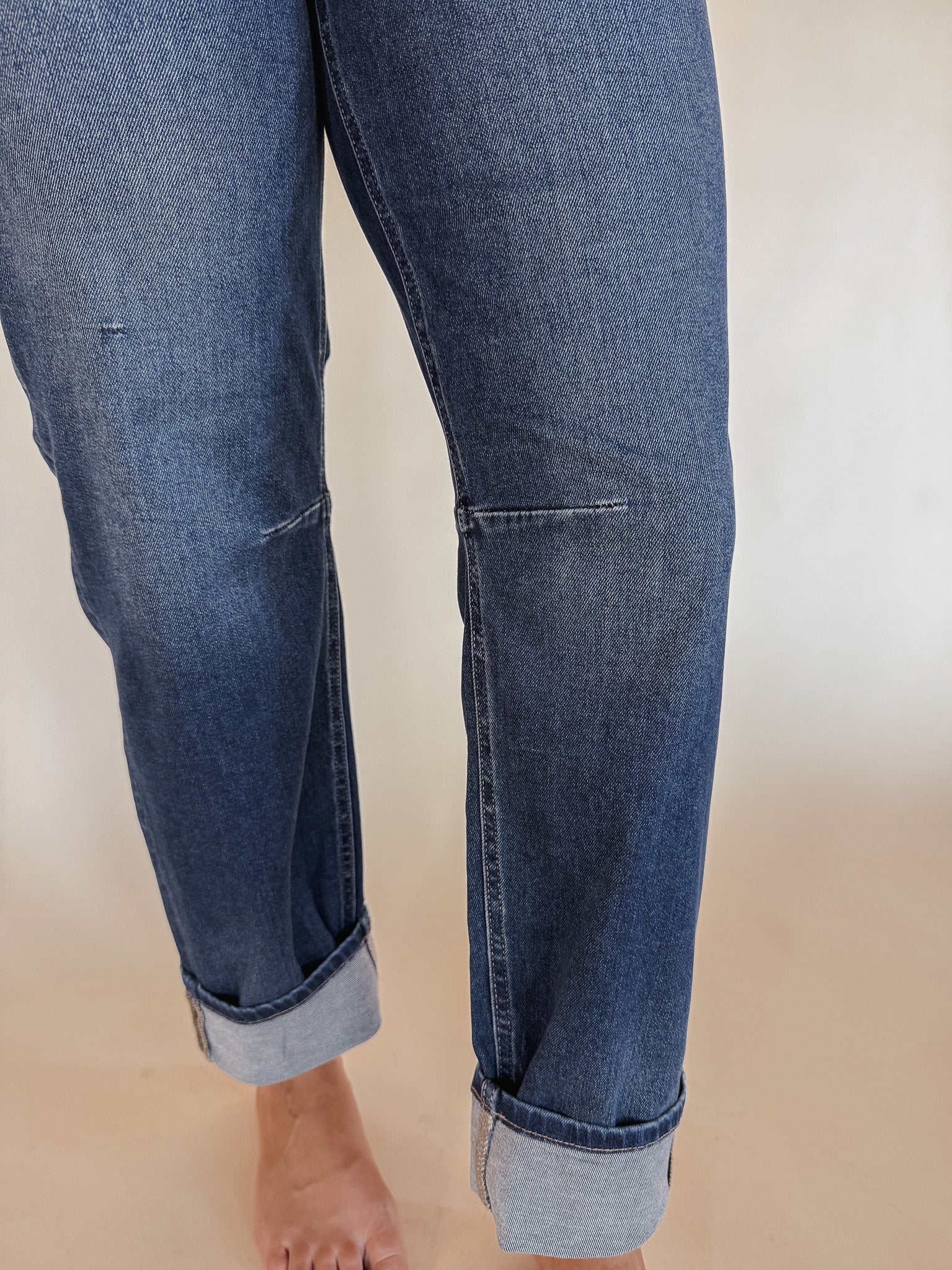 Slouchy, cropped barrel jeans with a cuffed hem. Cuff is not sewn and can be adjusted or rolled completely down! These are definitely a longer "cropped" jean, so they are tall girl friendly! Inseam is 30" long uncuffed.
